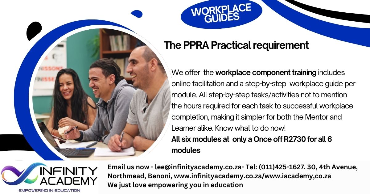 The workplace component is a critical part of the practical requirement as set out by PPRA, providing learners with structured, practical experience in a real estate environment. Under the supervision of a qualified Principal Property Practitioner. This component ensures learners develop the essential skills, ethical standards, and professional conduct required to operate effectively and confidently within the South African property sector.